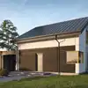 Der Tagesbereich besteht aus einem Wohnzimmer mit einem Gartenausgang und mit einer Verbindung zur Küche und aus einem Gästezimmer oder einem Bürobereich, der ideal für Home-Office ist. Im auf dem ersten Stockwerk angeordneten Nachtteil befinden sich zwei komfortable Kinderzimmer, ein Schlafzimmer mit einer separaten großen Garderobe für Eltern sowie ein bequemes und praktisches Badezimmer mit einer großen Dusche, einer Badewanne am Fenster und mit zwei Waschbecken. Ein beleuchtetes Treppenhaus mit einem Abstellraum ist ein Beispiel für eine Lösung, bei der die Nutzfläche vollständig ausgenutzt wurde. Wenn Sie die Funktionalität in einer modernen Form hoch schätzen, ist das Modell H2 gerade für Sie.